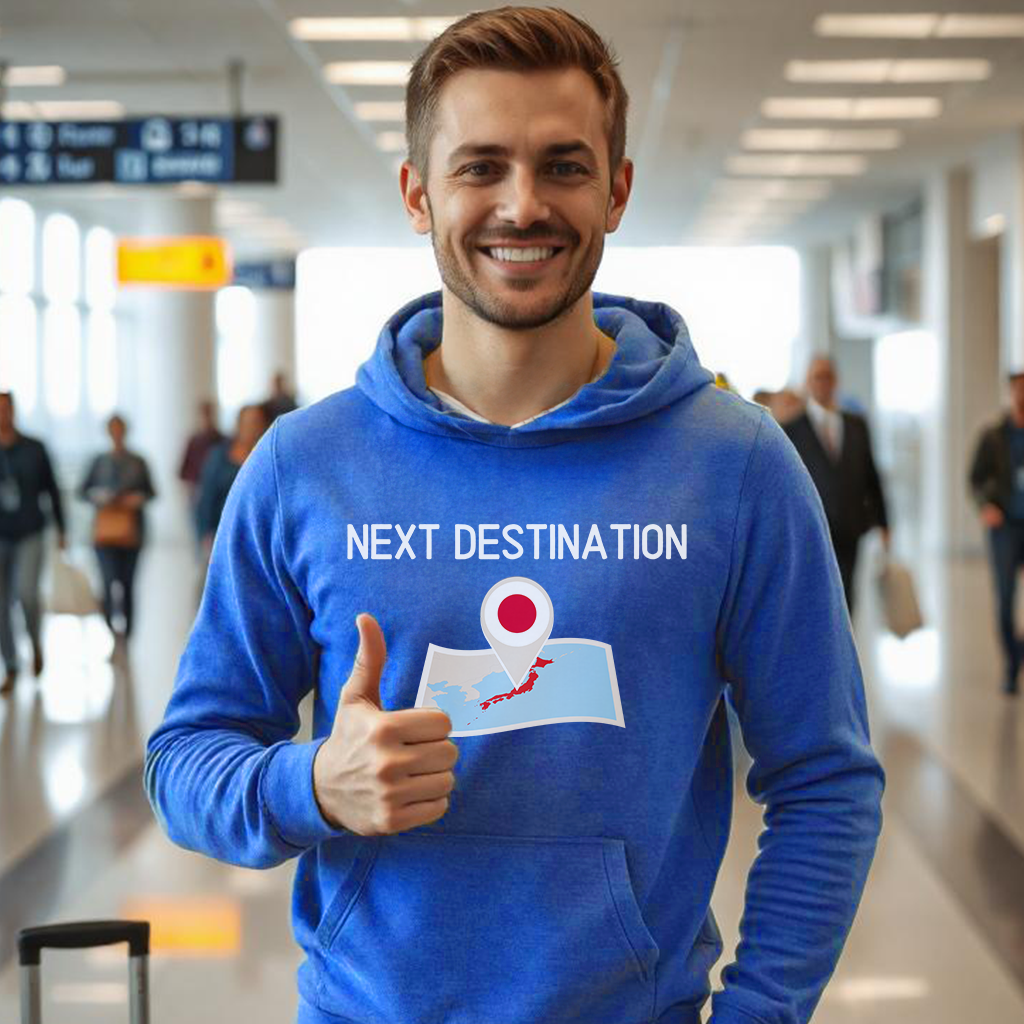 Plan your next adventure in style with the Next Destination Hoodie. Featuring a map of Japan with a bold location pin, this hoodie is perfect for travelers, wanderers, or anyone dreaming of exploring Japan. Made from a soft 50% cotton and 50% polyester blend, it offers comfort and warmth wherever your journey takes you.